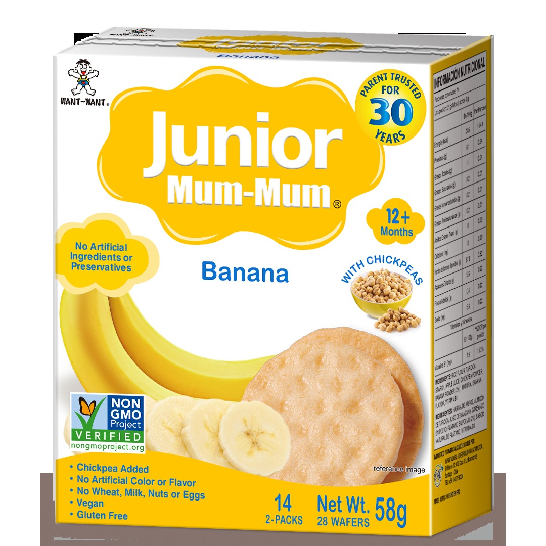 Etapa 2 Familia Mum-Mum. Mayor Textura y Sabor! Perfectas para esos gateadores, curiosos, lindos, ¡que «ya son grandes»! Snack saludable para bebés, endulzado con jugo de fruta natural, sin preservantes, colorantes, ni azúcar añadida y libre de sellos. ideales para la etapa de dentición. Libre de Gluten y de GMO. Libre de los 10 alérgenos más comunes (Maíz, Soya, Crustáceos, Maní, Pescado, Trigo, Sésamo, Frutos Secos, Huevo y Leche). Recomendado a partir de los 12 meses de edad. Cada caja trae 14 sachets, cada uno con 2 galletas en su interior.