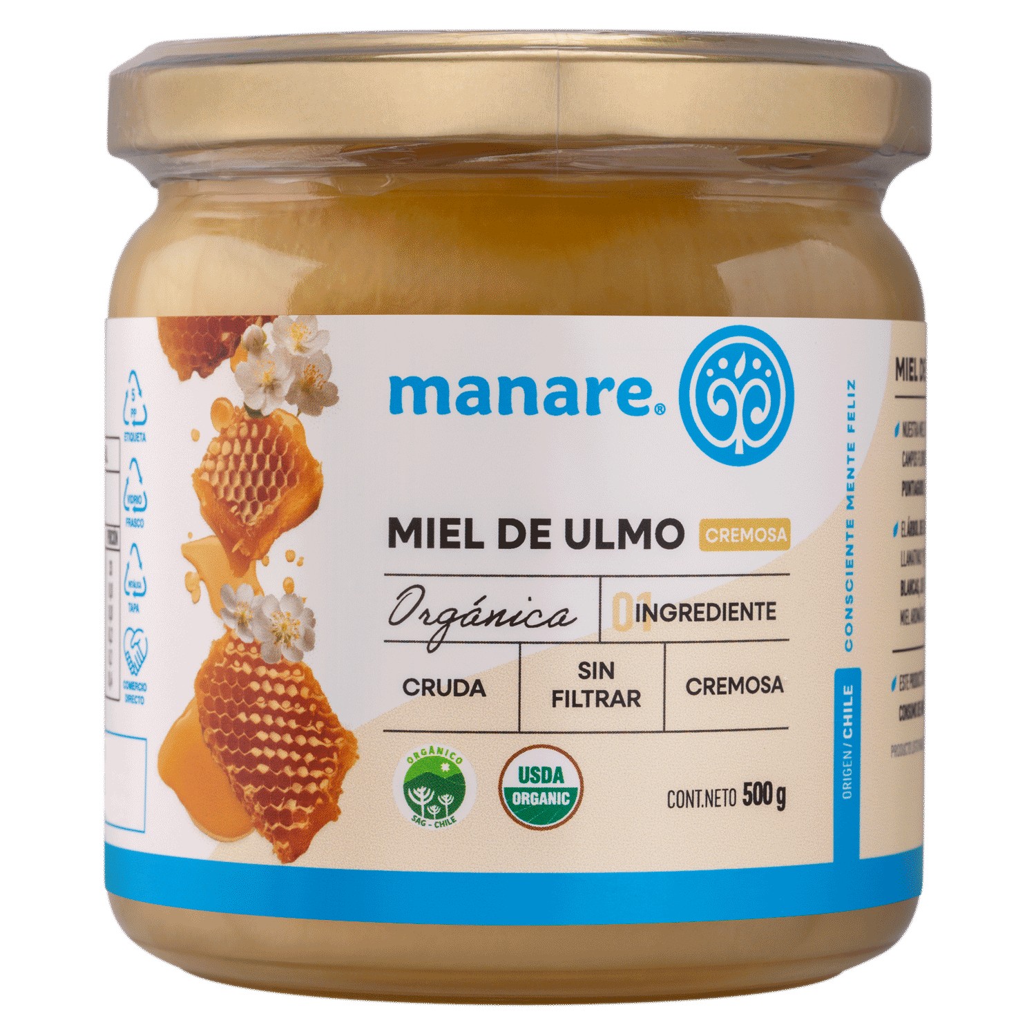 Miel orgánica de ulmo, reconocida por su sabor único y propiedades naturales. Ideal para endulzar y cuidar tu bienestar. s una miel de ulmo orgánica, batida y cremosa. Cruda y sin filtrar para que obtenegas todos los beneficios medicinales de la miel. Ingredientes: 100% miel de ulmo orgánica. *Este producto no debe ser consumido por menores de 12 meses de edad.